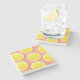 Ein Muster aus frischen und saftigen Zitronenschnitzen in lebhaften, lebhaften Gelbtönen, mit einer Aquarellstruktur, die ihm ein frisch geschnittenes Aussehen verleiht. Sie sind auf einem lachsfarbenen Hintergrund platziert, um einen hellen und sommerlichen Look zu erhalten, wie eine rosa Limonade.