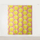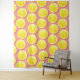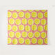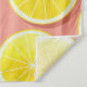 Ein Muster aus frischen und saftigen Zitronenschnitzen in lebhaften, lebhaften Gelbtönen, mit einer Aquarellstruktur, die ihm ein frisch geschnittenes Aussehen verleiht. Sie sind auf einem lachsfarbenen Hintergrund platziert, um einen hellen und sommerlichen Look zu erhalten, wie eine rosa Limonade.
