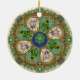 Jugendstil-Bögen umschließen die farbenfrohen Glasschichten dieser Mandala mit Feuerwerken, Sonnenblumen, Muscheln, Sonnen und Stürmen in leuchtenden Farbtönen, um die sommerliche Aktivität zu verkörpern.