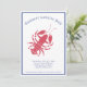 Sommerrotes, weißes und blaues Hummer an der Küste. Grosser roter Hummer im Gesicht, Hummer und blaues Streifen auf der Rückseite.