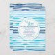 Ein wunderschönes, waagerechtes Muster der Blues mit weißer Farbe und einem runden Mittelgang, der die Details Ihres Party enthält. Ideal für eine Babydusche. (<a href="http://www.freepik.com/free-vector/watercolor-abstract-summer-pattern-background_1196817.htm">Designed by Freepik</a>). <br/>()<br/>Die Karte lässt sich einfach mit Ihrem Text, Schriftart, Schriftart, Papierform und der Auswahl von sechs Papiertypen anpassen.<br/>() Nicht genau das, was Sie suchen? Alle unsere Produkte können auf Ihre Bedürfnisse zugeschnitten werden, ohne Aufpreis.<br/>() Kontaktieren Sie uns einfach unter askcottonlamb@gmail.com.<br/>() Koordinierung der Produkte verfügbar: frag uns einfach!