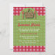 Ein Picknick in diesem Frühling oder Sommer? Ihre Gäste werden diese Einladung Liebe und werden sie in der Stimmung zu kommen begleiten Sie! Das Design dieser Einladung zeichnet sich durch ein rot-weißes Gingham-Muster im Hintergrund und eine grüne Schicht vorne mit einem Korb, Messer und Gabel aus. Auch ideal für Ferien und Grillabende!