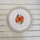 Teller aus dem Sommer-Party mit Blumenmotiv, geometrischer Rahmen und farbenfroher rot-gelber und blauer Grenze