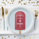 Diese niedlichen, personalisierten Teller sind so konzipiert, dass sie den Einladungen unserer beliebten Kinder zur Geburtstagsfeier entsprechen. Sie sind vorne mit einem kräftig roten Popsikel versehen, wobei die Worte "Happy Birthday [Name]" in weißer Retro-Schrift mit einem Herz geschmückt sind.