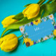 Sommerblauer Himmel mit goldgelben Sonnenblumen, Gänseblumen und verschiedenen Wildblumen mit botanischer Vegetation