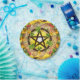 Helles Sommer Solstice Sonnenblumen und Elecampane Blumenkollektion Design mit braunem Aquarell-Pentagramm, Sonnenblumen, KräuterElecampane-Blume und einem wunderschönen Weizenschrei. Erleben Sie das strahlende und farbenfrohe Design während Ihrer Sommerfeier!