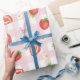 Summer Strawberry Daisy Floral Pink Gingham Party Geschenkpapier