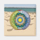 Dieses Strandmandala ist mit Muscheln, Segelbooten, Sand, Sonne, Meer und Palmen gestaltet und in einem transparenten Beach-Ball untergebracht, der auf einem Sandstrand am Horizont sitzt, um den Spaß des Sommers in Erinnerung zu rufen.