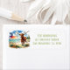 Der Sommer beleuchtet Rücksendeadressen-Aufkleber mit einer Aquarellfarbe Texas Long Horn am Strand. Personalisierbar.