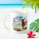 Die Sommer Tasse mit einem Texas Long Horn Aquarell am Strand. Personalisierbar.