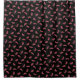 Make a splash with our summery shower curtain featuring an allover pattern of pink and black watermelon slices on a black background with a subtle tone-on-tone geometric pattern.