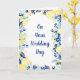 Diese neue und lustige Karte ist perfekt, um ein glückliches Paar am Hochzeitstag zu verwöhnen, aber der gesamte Text auf dieser Karte ist für Ihre individuelle Touch bereit, sodass Sie eine personalisierte Karte erstellen können, die für jeden Anlass perfekt ist. Die Vorderseite ist mit frischen gelben Zitronen mit minzgrün und königsblauen Blumen- und Blattakzenten versehen, die sie perfekt für Hochzeiten im Sommer und andere besondere Veranstaltungen machen.