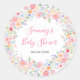 Dieser niedliche und skurrile Babyduschenaufkleber mit farbenfrohen Wildblumen in Rosa, lila, Orange und Gelb mit grünem Blattwerk. Der Text kombiniert handgeschriebene Skripte mit serifenlosen Schriftart für ein stilvolles und modernes Design. Das ist ideal für eine Frühjahr- oder Sommerdusche.