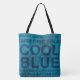 Navy und aquamarine Farbbahn. Worte, die gemeinen Sommer: Tropische Brisen, Cool Blau und Tequila Sonnenaufgang kombiniert mit Bildern von Monstera Blätter, Palmen Bäume, Hibiskus und erstellen Sie diese grafische Gestaltung. Dieses Design besteht aus drei verschiedenen Farben. Die Strandtaschen sind umkehrbar.