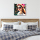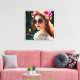 A young woman with auburn hair wears a vibrant flower crown and round sunglasses. Hummingbirds flit nearby.