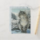 Eine schneebedeckende Leopardin, die an einem entfernten Punkt in den umliegenden Bergen aufblickt, ist ihr schönes Fell eine perfekte Tarnung. Von "Summit King", Morgane's Original-Acrylgemälde. Ideal für alle Tierliebhaber.