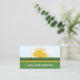 Eine Visitenkarte, die die untergehende Sonne über dem Gras mit einigen Wolken für die Rasenpflege und die berufliche Gartenarbeit oder für die Landschaftsarbeit wie Landschaftsschutz, Rasenmähen und -pflege, Grünflächen usw. illustriert.