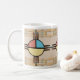 Reizende Tasse Zias (Sun) mit weichem südwestlichem Motiv. Grafik durch Zeke Sena, New Mexiko, USA.