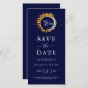 Mit diesem eleganten Monogramm zum Hochzeitsdatum verkünden Sie die Datumskarte speichern. Dieses elegante Monogramm mit tiefblauem marineblau-Hintergrund, umgeben von goldener Sonne, Silbermond und glänzenden Sternenakzenten, erinnert an die Schönheit einer sternenbeleuchteten Nacht. Diese Karte ist ideal für Paare, die himmlische Themen Liebe haben. Sie verbindet Romantik mit zeitloser Eleganz und schafft so den perfekten Rahmen für Ihre Hochzeitsfeier.