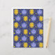 ruhige Monde, lächelnde Sonnen und leuchtende Sterne Pop gegen einen tiefen blauen Himmel auf diesem Scrapbook Papier. Celestial gelb, und Blues, mit einer eleganten Leinenstruktur.