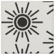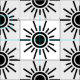 Ein Stoff mit einem sich wiederholenden geometrischen Sonnenmotiv. Dieses Muster kann auch auf unterschiedliche Weise angepasst werden.