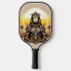 "Dieses reizvolle Design besticht durch eine zentrale Figur, die in verzierter, möglicherweise altertümlicher ägyptischer oder mittelöstlicher Kleidung, Set vor dem Hintergrund einer stilisierten Sonne, Wüstendünen und Palmen verziert ist. Die Figur hat einen ruhigen und wissenden Ausdruck, der Weisheit oder mystische Einsicht nahe legt. Die Farbpalette wird von warmen Golden und kontrastreichen Schwarzen dominiert. Dieses Design ist vielseitig für Produkte, die auf eine mystische, spirituelle oder historisch inspirierte Ästhetik abzielen. Stellen Sie sich das mit Meditationsaccessoires, künstlerischen Drucken, böhmischen Kleidung oder dem Branding für ganzheitliche Dienstleistungen vor."