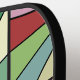 Dieses Paddel hat ein abstraktes Design, das aus neun Quadraten besteht, mit einem Kreis und "Strahlen", die aus dem Kreis in vielen verschiedenen Farben kommen.