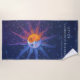 Dieses einzigartige Strandtuch zeichnet sich durch eine künstlerische Wiedergabe von Mond und Sonne aus, die mit einem blauen Sternenhimmel verbunden ist. Der Text lautet "There's Nothing Like Perfect Alignment" mit dem Datum "8.21.17" unten. Das Datum bezieht sich auf die "Great American Solar Eclipse", die am 21. August 2017 stattfindet. Text und Datum können personalisiert sein, eine "perfekte Ausrichtung" in Ihrem eigenen Leben zu repräsentieren.