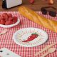 Ein roter und scharfer Pfefferkarikaturencharakter. Originelles Design mit Vintagem Sonnenbursteffekt. Geschenke Idee für Menschen, die Liebe kochen.