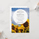 Ce design présente des tournesols et un arrière - plan bleu ciel. Les cadres simples en cercle blanc avec sa typographie élégante sont placés sur la photo des champs de tournesols rustiques pour créer un design étonnant. Les tons jaunes et bleus du ciel et des tournesols créent une atmosphère de jardin naturel de campagne. Conception élégante d'invitation de mariage avec des éléments modernes. Des articles de papeterie mariage correspondants et d'autres formats d'invitation de mariage sont également disponibles.