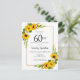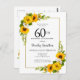 Jolie invitation de tournesol jaune floral 60ème anniversaire. Les tourbières jaunes et les marguerites blanches se mêlent aux tournesols. Un cadre en or rectangulaire lui donne une ambiance élégante. Très facile à customiser. Le fond est doté d'un bouquet de tournesol. C'est parfait pour un anniversaire d'été. Cet article fait partie de la collection Jaune Sunflower White Daisy.