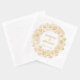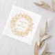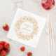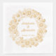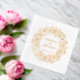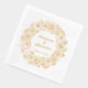 Cette belle couronne fleurie entourant les noms des époux et la date du mariage, est composée de beaux tournesols, des pivoines tendres et des myosotis "oublie-moi-pas". Le tout imprimé avec de l'or magnifique sur ces magnifiques serviettes, parfait chic pour votre grand jour!