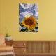 Das ist ein wunderschönes Foto einer Sonnenblume mit blauem Himmel und Wolken.