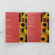 Guide your guests through your celebration with this bold sunset coral and gold sunflower wedding program featuring your photo. The striking design displays your names, wedding date, ceremony overview, and a personalized thank you message on the front, with your complete wedding party details inside and a beautifully framed engagement or pre-wedding photo on the back surrounded by artistic sunflower silhouettes in graphic gold with integrated coral accents and luxe striped patterns.