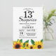 Sunflower Surprise 13e anniversaire Invitation. Fleurs florales et Arrière - plan blanc. Country Vintage Retro. Enfants Fille anniversaire. 12ème 13ème 15ème 16ème 18ème 20ème 21ème 30ème 40ème 50ème 60ème 70ème 80ème 90ème 100ème, tout âge. Numérique imprimable. Pour plus de personnalisation, cliquez sur le bouton "Customiser" et utilisez notre outil de conception pour modifier ce modèle.
