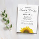 Floral Surprise Invitation fête d'anniversaire, avec un design de tournesol jaune péeking et un arrière - plan blanc. Avec le lettrage de typographie noire personnalisable, vous pouvez ajouter vos propres informations. Un invitation simple et élégant pour ajouter une touche de campagne élégante à votre célébration.