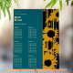 This bold modern teal blue and gold sunflower wedding seating chart features artistic sunflower silhouettes with integrated teal accents and luxe striped patterns, creating an elegant table setting that ties your entire celebration together. Clean typography presents your couple names, wedding date, and seating plan with your guests' names.