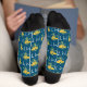 Sunflowers & Leaves Monogram Blue Pattern Socken