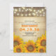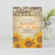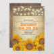 Invitation mariage campagnard rustique avec fleurs de tournesol, burlap bois texture arrière - plan et chaîne de lumières. Shabby et invitation chic au mariage campagnard avec des tournesols jaune et orange vif.