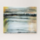 A grove of Aspen trees or Birch trees are lit by the morning sun light that peeks through the branches in a watercolor illustration for nature lovers in soft gray, grayish blue and golden hues.