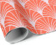 The paper features a large-scale, mid-century modern geometric pattern consisting of a fan design. The design uses a coordinated mix of muted coral set against a pale pink background. Perfect for birthdays, holidays, or everyday gifting, this design adds a joyful pop of color to any present—no extra embellishments needed.