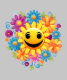 A cheerful sun surrounded by a bouquet of vibrant flowers, spreading warmth and happiness.