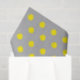 A repeating pattern featuring bright yellow splatter-style dots set against a smooth grey background.