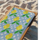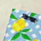 Charming branches of lemons decorate this blue and white checked beach towel.