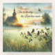 This enchanting artwork captures the serene beauty of a sunrise landscape, where golden morning light floods a peaceful meadow and a quaint wooden church stands silhouetted against the soft mist. A gathering of songbirds perches on dew-kissed branches, adding warmth and life to the tranquil scene. The delicate blend of warm sunlight, lush greenery, and drifting fog evokes a sense of stillness and spiritual reflection, perfect for those who cherish early moments in nature. Rendered in a watercolor countryside style, this piece harmonizes rustic charm with the quiet joy of daybreak. Ideal for anyone drawn to peaceful rural scenes or spiritual sunrise paintings, this design blends the calm of misty meadow art with the uplifting energy of nature awakening. AI generated artwork.