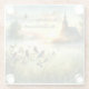 Sunrise Church with Birds in Misty Meadow Glasuntersetzer