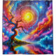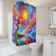 Dieser Duschvorhang hat eine künstlerische Sonnenuntergangsszene.