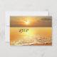 Romantische RSVP-Karte mit einem Bild des Strandes bei Sonnenuntergang in warmen gelben Orangenfarben. Auf der Rückseite ist auch eine leicht anzupassende QR-Code-Vorlage hinzugefügt. Die Rechteck-Hintergründe können im erweiterten Editor angepasst oder gelöscht werden.