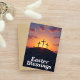 Die Karte zeigt drei Kreuze, die gegen einen leuchtenden Sonnenuntergang silhoutiert sind. Ideal, um herzliche Segen zu senden und die wahre Bedeutung von Ostern zu teilen. Diese Karte dient während der Saison auch als wunderschöne Erinnerung der Hoffnung und Erneuerung.