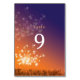 Romantische Illustration glitzernder Lüstern im Sonnenuntergang und Indigo, orange & lila Farbhintergrund, entworfen auf individuellen Hochzeitskarten Tischnummer. (**Passen Sie die flache, doppelseitige Karte nacheinander an und legen Sie die Karten separat in Ihren Warenkorb. Sie dürfen die automatische Nummerierung nicht ohne Ihre Anpassung erwarten.**) Ideal für Ihre kommende ROMANTIC SUNSET WEDDING | ORANGE & LILA FARBWEDING | ELEGANTE LANDESWEITUNG ODER DANDELION THEME WEDDING. Sie können auch die Schriftartes, Farben und Größen des Textes ändern. ((Sie finden die passenden Hochzeitsessentials & Favoriten in diesem Laden, Bridal Heaven. Wenden Sie sich an ujean4791@gmail.com, um sich eine maßgeschneiderte Arbeit und/oder ein passendes Hochzeitsbriefpapier zu besorgen.)